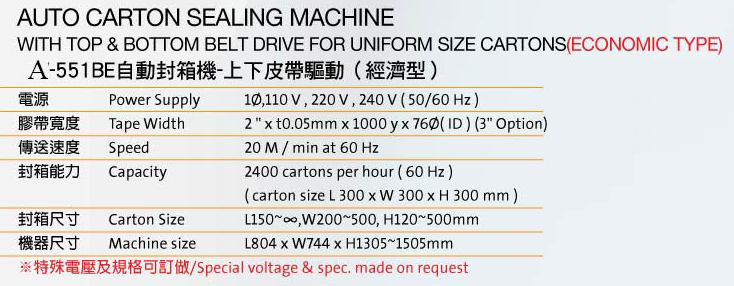 551BE自動封箱機-上下皮帶驅動(經濟型)