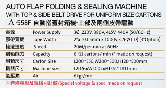 558F 自動摺蓋封箱機-上部及兩側皮帶驅動