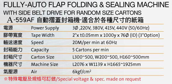 559AF 自動摺蓋封箱機-適合於各種尺寸的紙箱