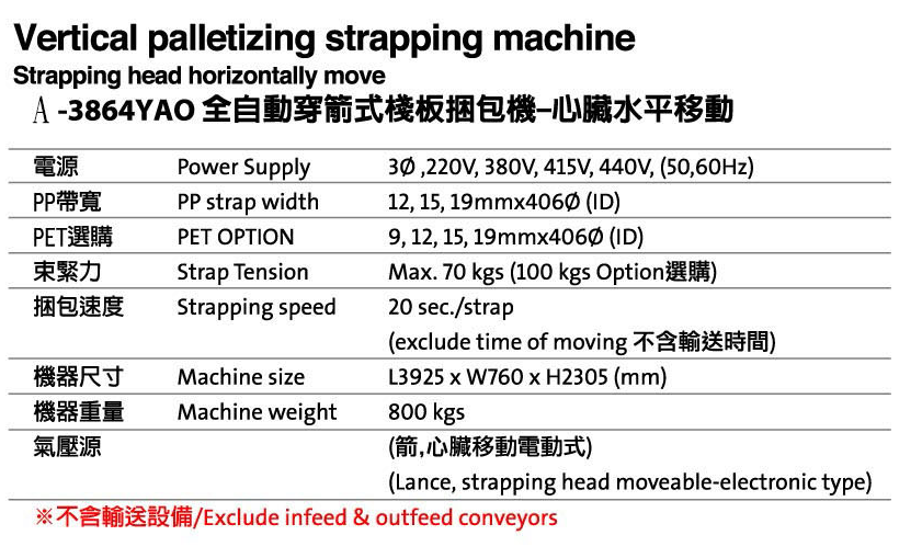 3864YAO 全自動穿箭式棧板捆包機-心臟水平移動