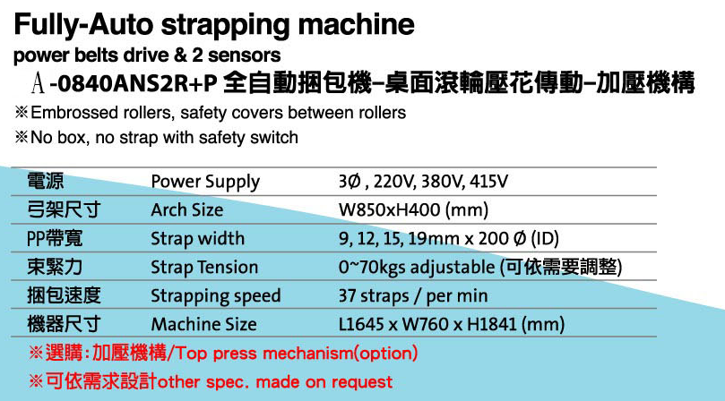 0840ANS2R+P 全自動捆包機-桌面滾輪壓花傳動-加壓機構