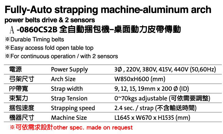 0860CS2B 全自動捆包機-桌面動力皮帶傳動